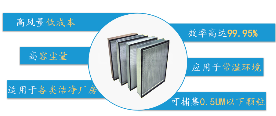 耐高溫高效過濾器產(chǎn)品概述:耐高溫高效過濾器使用有隔板設(shè)計(jì),波紋形隔板可以精確地保持褶層間距,在最小阻力下,最大限度地利用濾料,過濾器濾材兩面180褶翻褶形褶層,濾料折...
