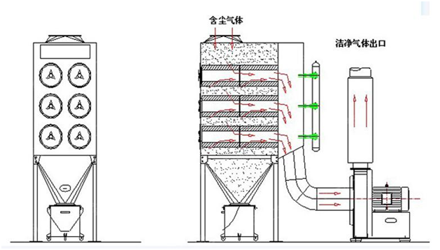 機械加工行業濾筒除塵技術原理:
