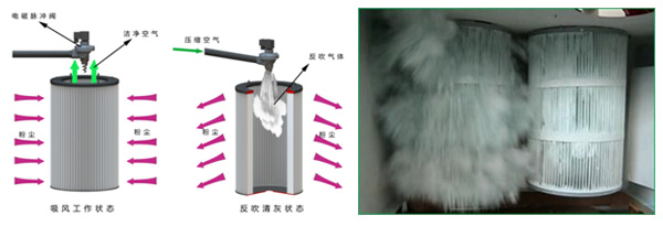 氣動脈沖反吹工作原理示意圖