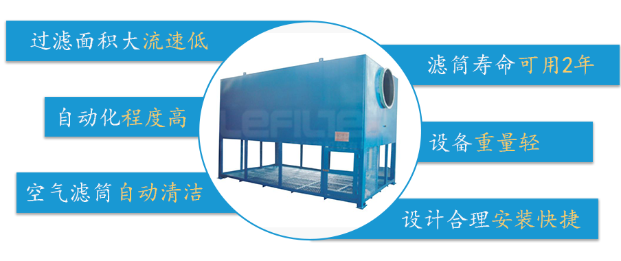 自潔式空氣過濾器吸入含有灰塵的空氣之后,將造成設備的磨損,吸入的灰塵會在風機葉片表面上結垢,造成設備中轉子的動平衡失衡精度下降,使其工作壽命大大減短,灰塵中的有害化學成分會使設備生銹、腐蝕。因而,空氣動力設備必須要配高精度空氣過濾器。